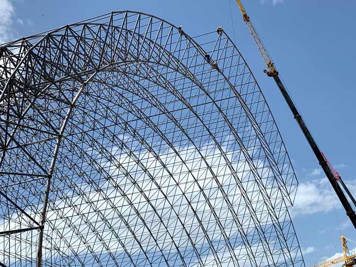 (2)网架加工前应对现场尺寸进行复测,确认无误后方可进行加工、安装;网架制作、运输、安装应遵守《空间网格结构技术规程》JGJ7-2010、《钢网架荆州螺栓球节点》JG/T 10-2009、《钢网架荆州螺栓球节点用高强度螺栓》 GB/T 16939-2016、《荆州钢结构荆州工程荆州施工规范》 GB50755-2012、《荆州钢结构荆州工程施工质量验收标准》 GB50205-2020。